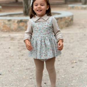 La Colección Acebo moda infantil destaca por su encanto atemporal y versatilidad. Con un delicado estampado floral en tonos suaves, es perfecta para vestir a niños y niñas con estilo coordinado y lleno de frescura.