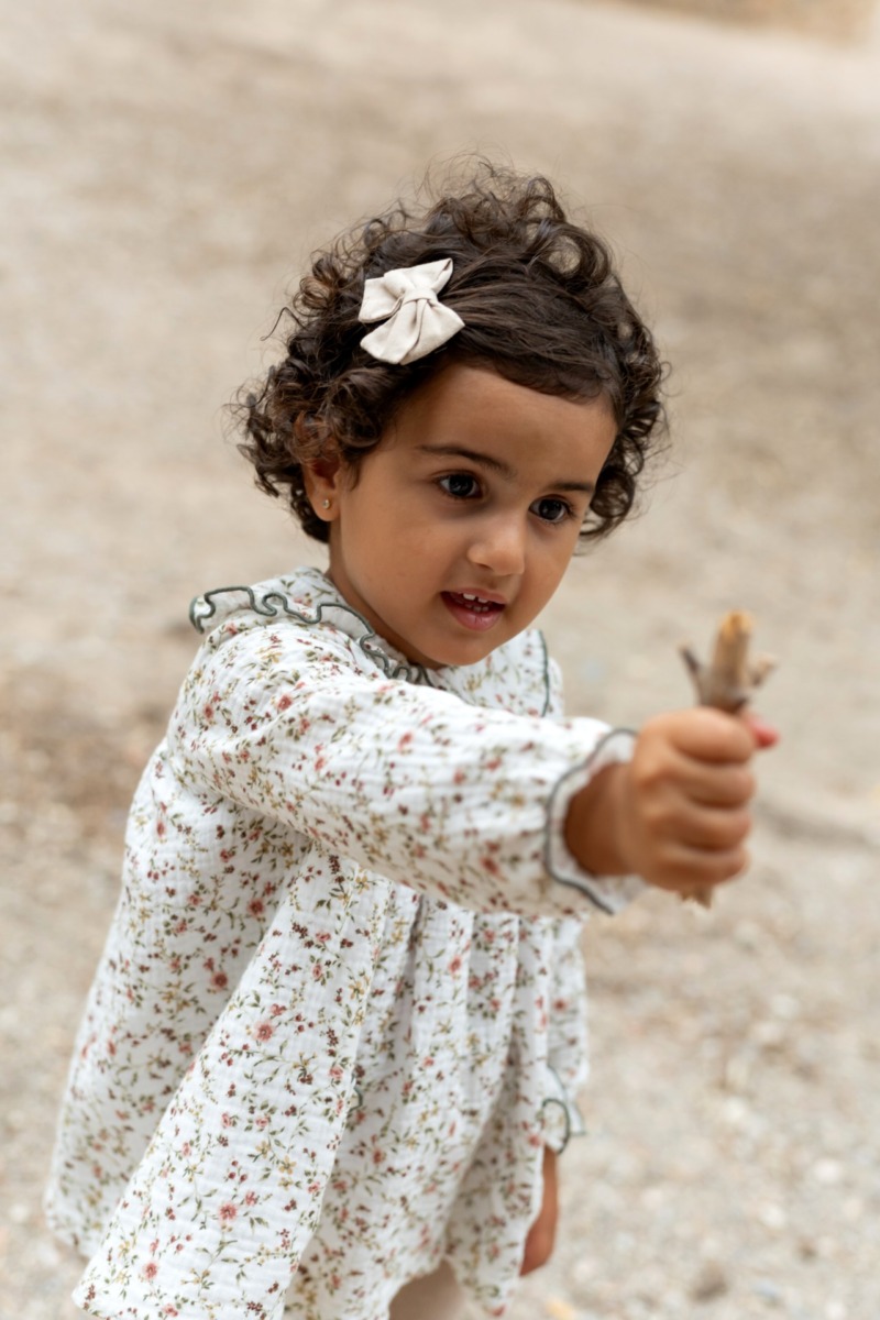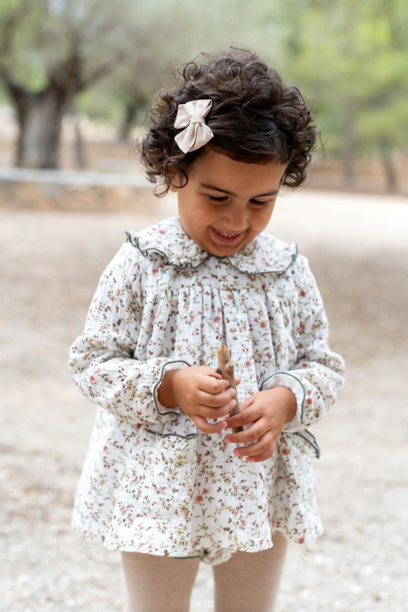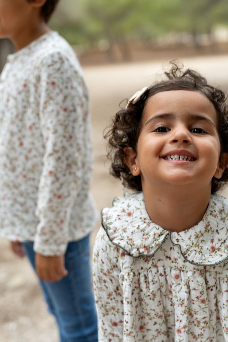 El Jesusito Avellano es una prenda pensada para las más pequeñas, uniendo dulzura, comodidad y un toque artesanal inconfundible. Pertenece a nuestra colección de moda infantil y destaca por su estampado floral suave, su corte holgado y los detalles cuidados que lo hacen único.