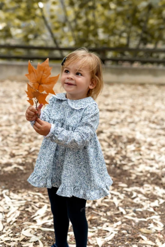 El Jesusito Encina está pensado para acompañar momentos felices: una tarde en el parque, una comida familiar o un paseo entre hojas doradas. Su estampado floral suave y su caída ligera crean un look tierno y muy cómodo. Además, su confección artesanal cuida cada detalle para que la prenda dure y, por lo tanto, pueda usarse una y otra vez.