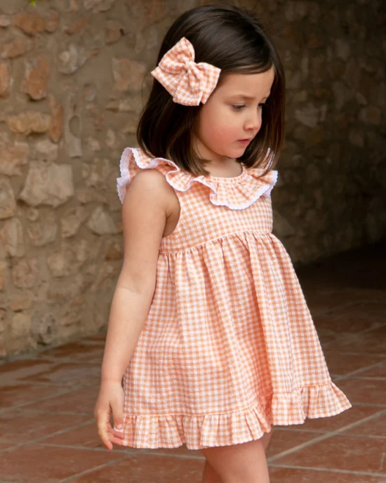 Su estampado vichy y su colorido hacen que este jesusito combine fácilmente con chaquetas ligeras o calzado veraniego. Puedes completar el look con sandalias o bailarinas para lograr un estilo más arreglado. Su versatilidad lo convierte en una prenda imprescindible para el armario infantil.