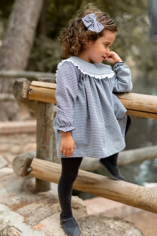 El Jesusito Nogal es una prenda encantadora de moda infantil artesanal, diseñada para ofrecer estilo y comodidad a las más pequeñas. VICHY NEGRO Y BLANCO lo convierte en una pieza atemporal, perfecta para quienes buscan un look clásico con un aire actual.