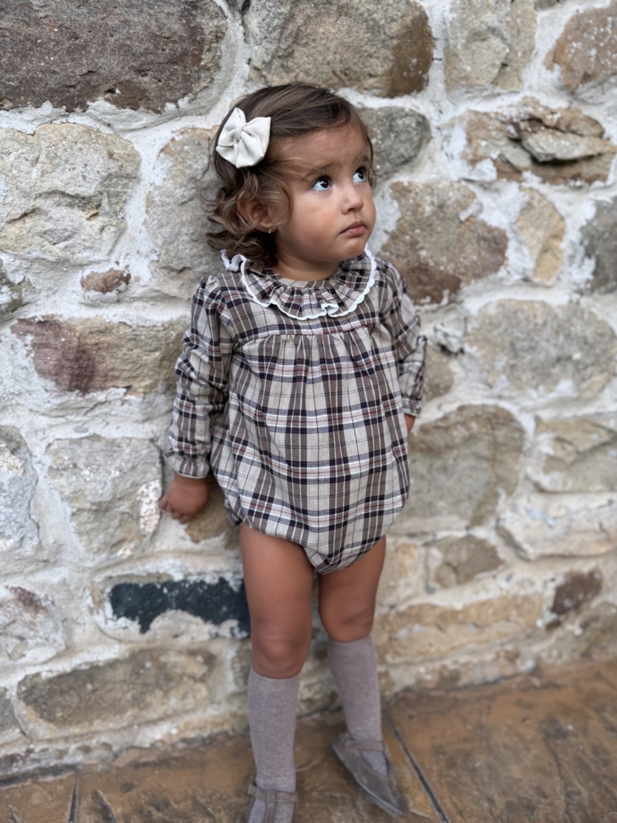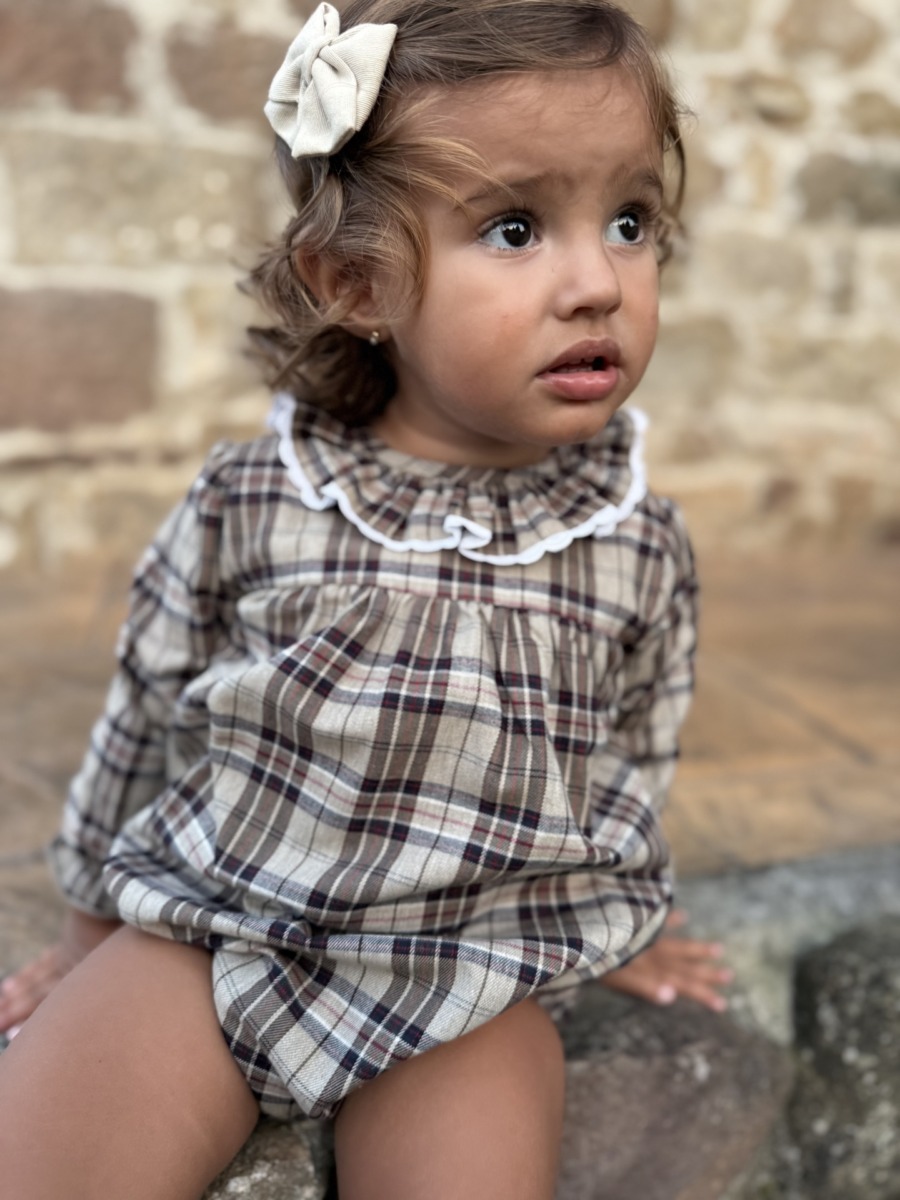 El Pelele Abeto de bebé se adapta tanto a los momentos cotidianos como a celebraciones familiares. Su cuadro tartan es perfecto para invierno , además para ocasiones especiales, fotos navideñas.. Un clasico que pasara de generación. Una prenda que combina tradición y estilo moderno en la ropa infantil.