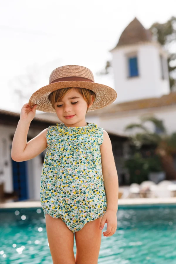 - Pelele de bebé unisex corte canesu con volante en el cuello