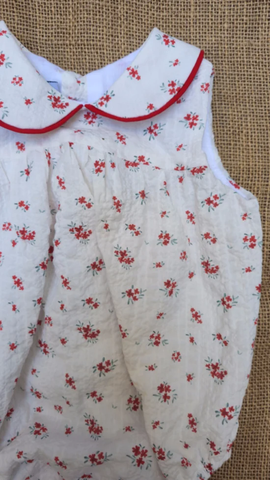 El Pelele Montañesa es una prenda infantil diseñada especialmente para ofrecer comodidad y elegancia a los más pequeños de la casa. Su delicado estampado floral, combinado con detalles rojos que resaltan su belleza, convierte este pelele en una opción ideal para vestir con estilo y ternura en cualquier ocasión.
