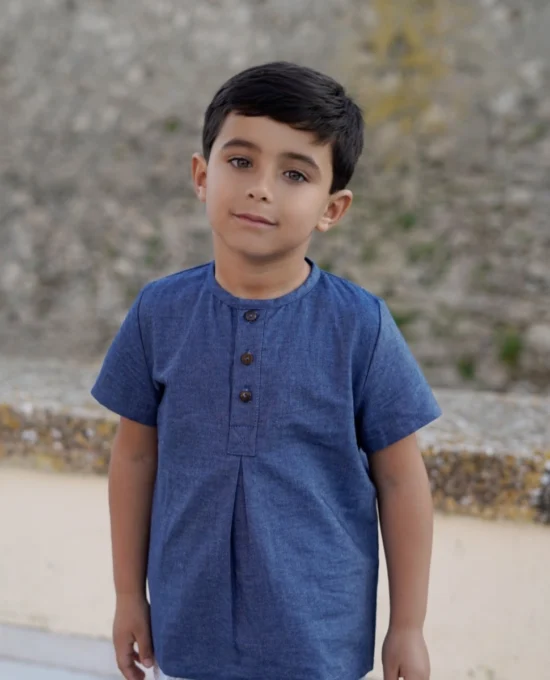 Esta polera de moda infantil presenta un corte amplio que permite libertad de movimiento, botones en la parte delantera y mangas con ligera caída. Además, su tejido denim suave es ideal para las pieles sensibles, ofreciendo resistencia sin perder flexibilidad.