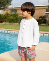 El short Cumbia moda infantil es ideal tanto para ir a la playa como para pasear por el parque. Su tejido ligero permite que los niños se sientan cómodos durante todo el día. Por eso, es una prenda básica en cualquier armario de temporada.