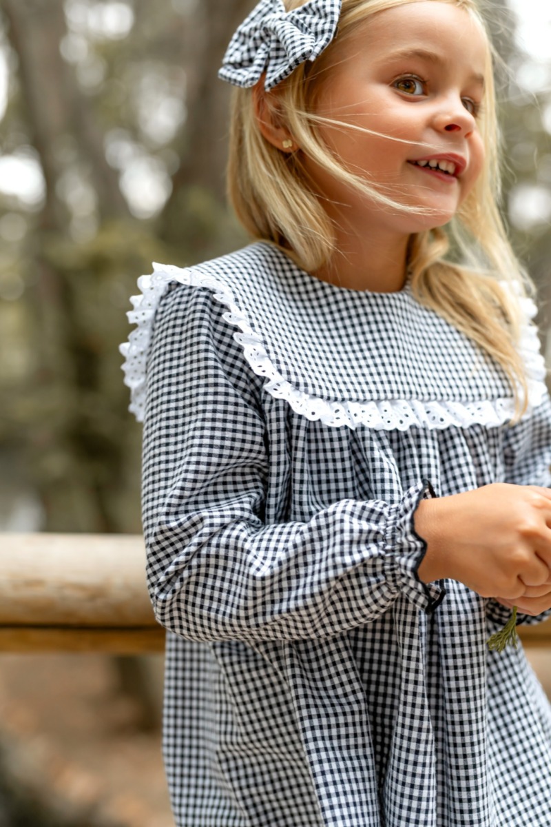 El Vestido Nogal de niña es una prenda de moda infantil artesanal que combina estilo clásico y comodidad. Con su diseño en cuadros VICHY NEGRO Y BLANCO, transmite delicadeza y encanto, siendo perfecto para acompañar a tu hija en los momentos más especiales.