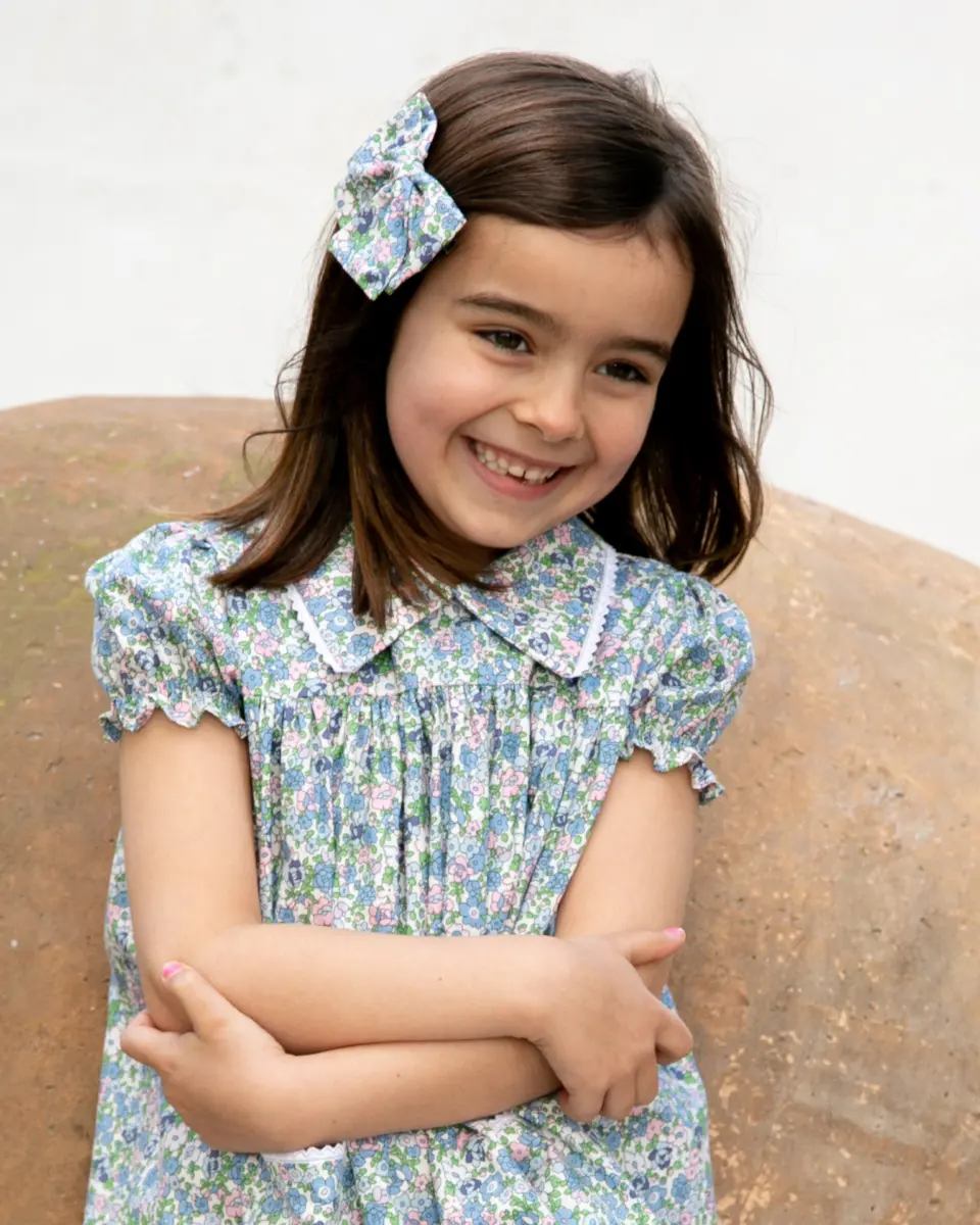 El vestido Rumba moda infantil está diseñado para que las niñas vivan el verano con frescura, comodidad y mucho estilo. Su tejido ligero, su vuelo alegre y su estampado lleno de color lo convierten en una prenda perfecta para días especiales y también para los más cotidianos.