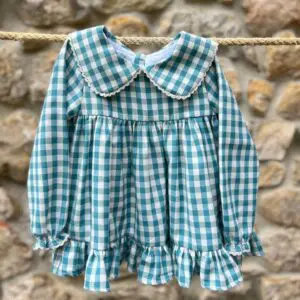 • ¡Oferta! Vestido para niña con estampado de cuadros vichy en color azul turquesa, diseño fresco y elegante de Sutier, ideal para ocasiones especiales o el día a día.